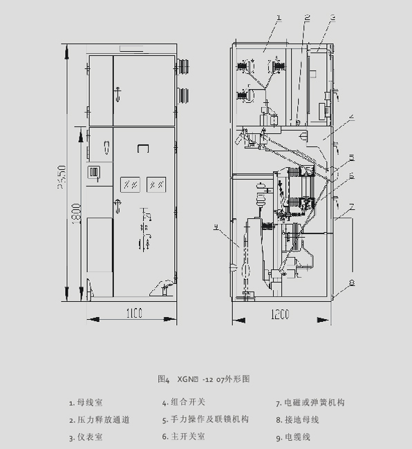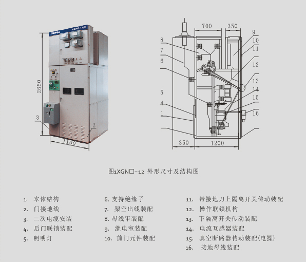 XGN2-12開(kāi)關(guān)柜為金屬封閉箱式結(jié)構(gòu),柜體骨架由角鋼焊接而成,柜內(nèi)分為斷路器室、母線室、電纜室、繼電器室等,室與室之間用鋼板隔開(kāi)。
