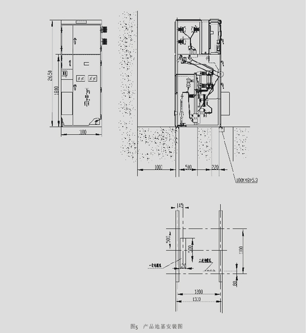 4. 斷路器的操動(dòng)機(jī)構(gòu)裝在正面左邊位置,其上方為隔離開(kāi)關(guān)的操作及聯(lián)鎖機(jī)構(gòu)。開(kāi)關(guān)柜為雙面維護(hù),前面檢修繼電器室的二次元件,維護(hù)操動(dòng)機(jī)構(gòu),機(jī)械聯(lián)鎖及傳動(dòng)部分,檢修斷路器。后面維修主母線和電纜終端,在斷路器室裝有照明燈。前門(mén)的下方設(shè)有與柜寬方向平行的接地銅母線,其截面為4×40mm2。